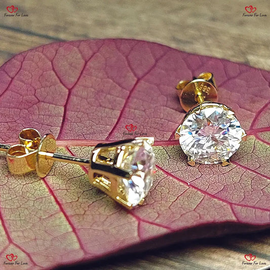 Solid Gold Moissanite Stud Earrings | Brilliant Round Cut Screw Back