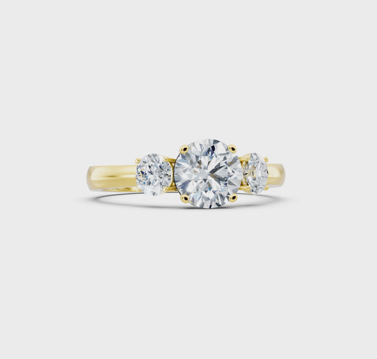 1 TCW Round Lab Created Brilliant Cut IGI Diamond Engagement Ring - Solid White Gold Three-Stone Ring