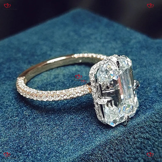 5 Carat Radiant Lab Diamond Engagement Ring, Emerald Pave Band