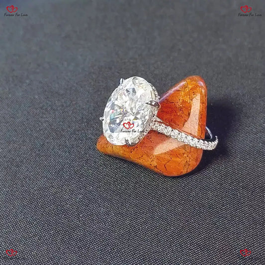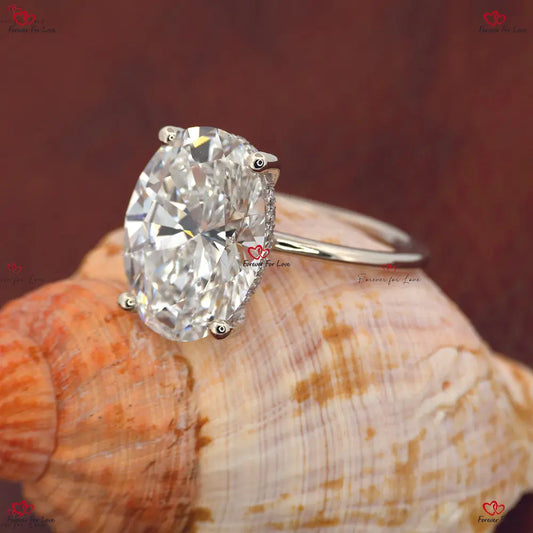Hidden Halo Oval Engagement or Wedding Ring In Solid Gold