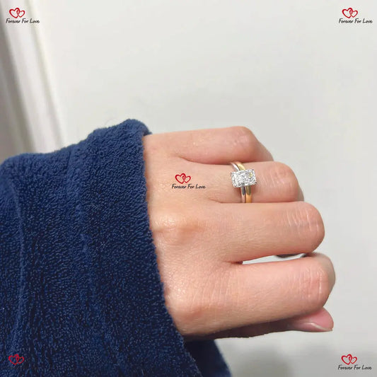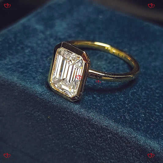 Bezel Setting 2 Ct East-West Emerald Cut Lab Diamond Engagement Ring