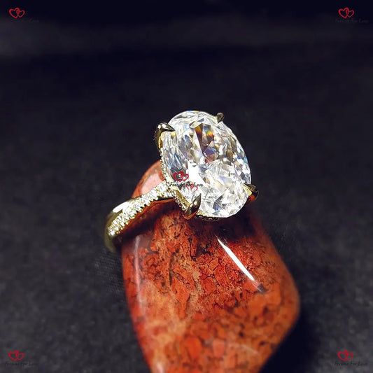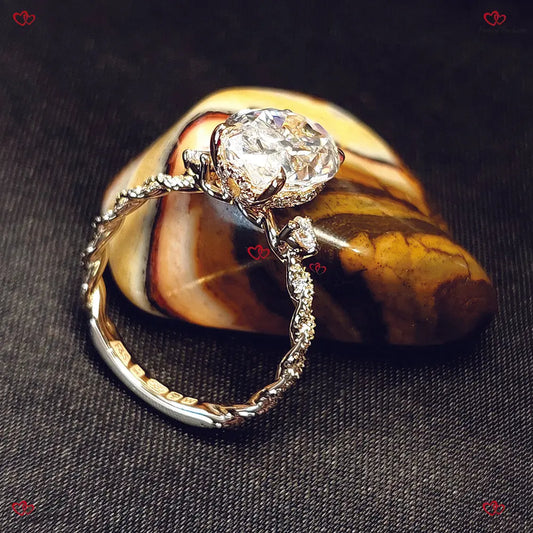 Hidden Halo Twist Band Oval Engagement Ring Crushed Ice Diamond
