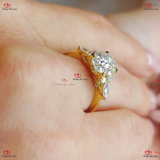 Unique Oval Engagement Ring, Art Deco Cluster with Marquise Diamonds