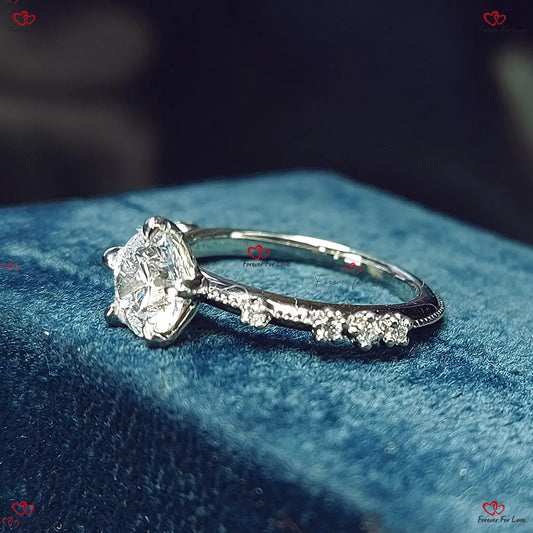 Grey Blue Crushed Ice Cushion Cut Diamond Ring