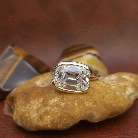Bezel Setting 2 Ct East-West Emerald Cut Lab Diamond Engagement Ring