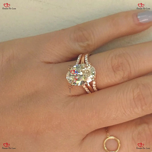 3.1Ct D VVS1 Oval Cut Lab Grown Bezel Diamond Bridal Set