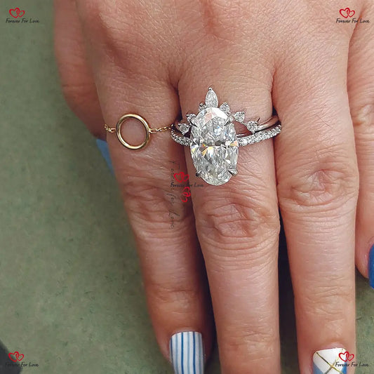Oval Cut Engagement Ring Set with Curved Diamond Band