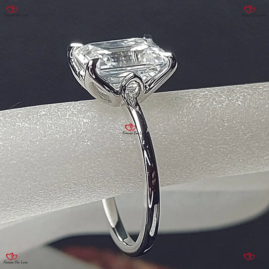 Emerald Cut Forever Moissanite Engagement Ring in White/ Gold or Platinum – Diamond Emerald Cut Solitaire Ring