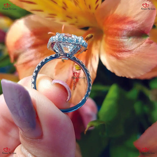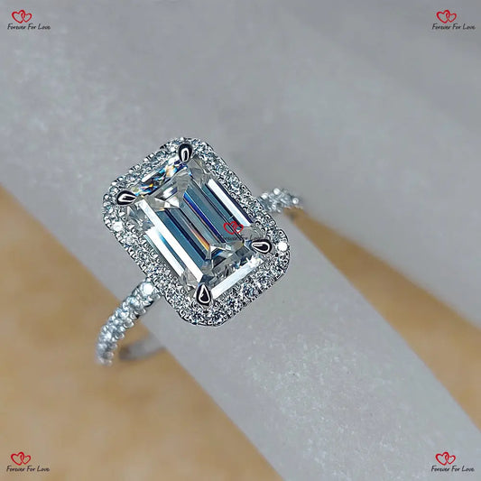 Emerald Cut Double Halo Moissanite Engagement Ring | Forever Ring | Pave Diamond Modern Engagement Ring