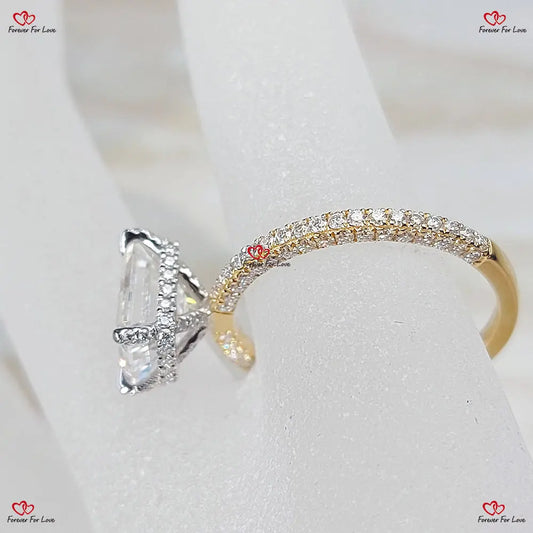 Emerald Cut Diamond Wedding Ring Set in Solid Gold