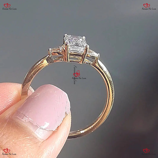 Emerald Cut Diamond Engagement Ring with Pear Side Stones | Certified Trilogy Diamond Ring by Forever For Love