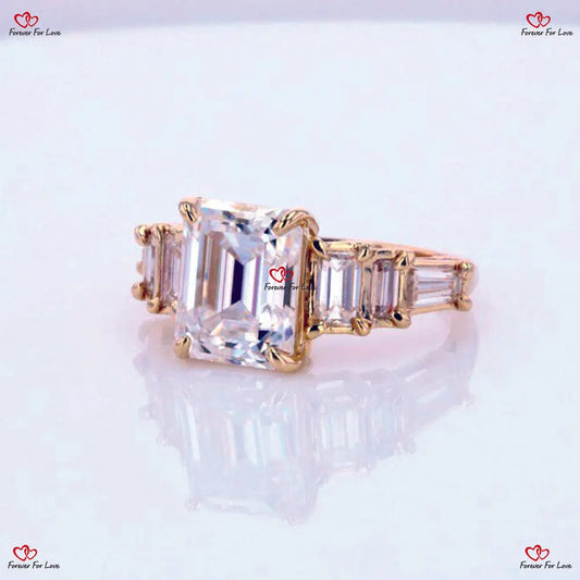 Emerald Cut and Trapezoid Cut Diamond Engagement Ring - Three Stone Wedding Ring Anniversary Trilogy Ring