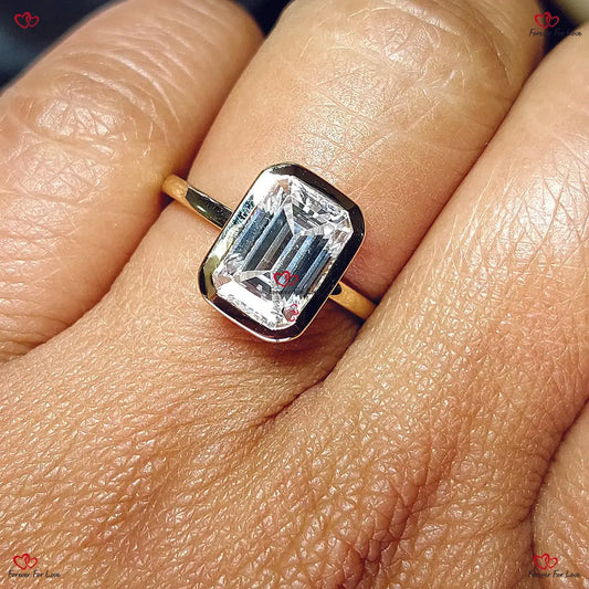 Bezel Setting 2 Ct East-West Emerald Cut Lab Diamond Engagement Ring