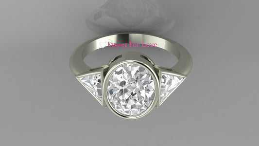Bezel Setting Solitaire Crushed Ice Oval Diamond Engagement Ring