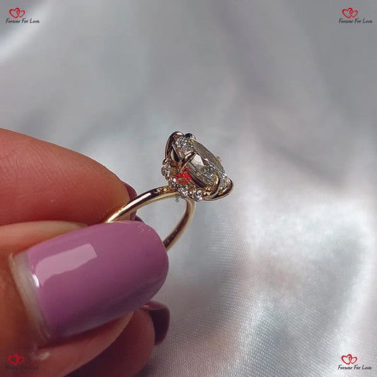 Vintage Oval Cut Lab Grown Diamond Ring | Oval Engagement Ring | Pear Diamond Wedding Ring for Women | Anniversary Gift