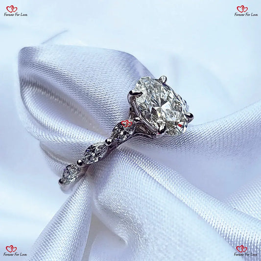 Vintage Oval Cut Lab Grown Diamond Ring - Oval Engagement Ring with Pear and Round Side Stones