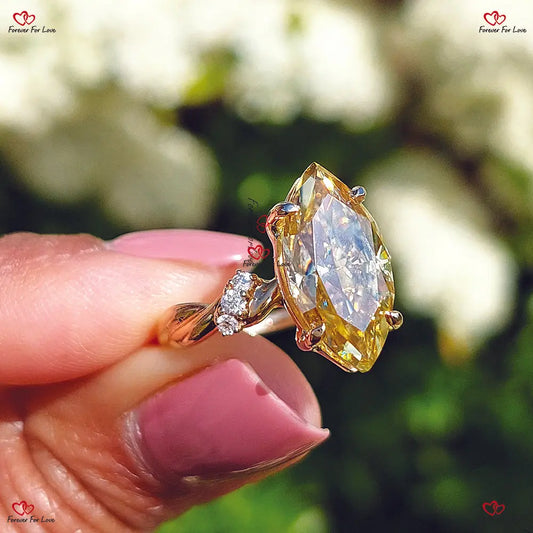 Canary Yellow Marquise Cut Moissanite Yellow Gold Ring | Twist Band Diamond Ring for Women