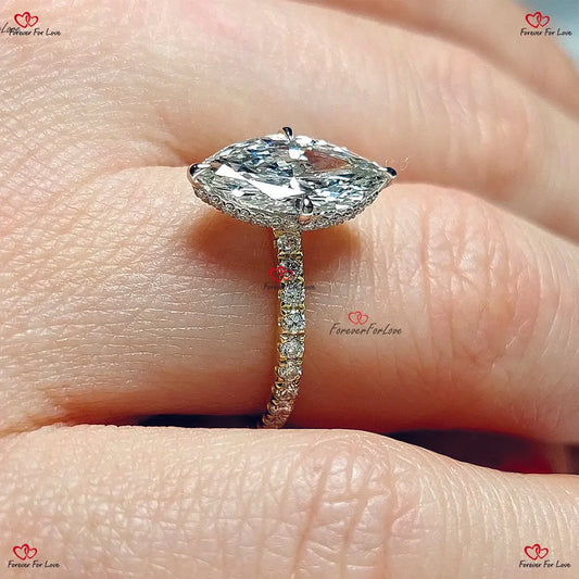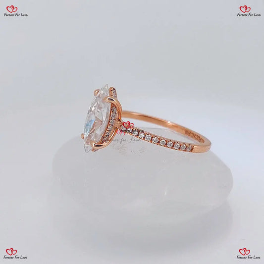 Marquise Cut Moissanite Engagement Ring Hidden Halo Solid Gold