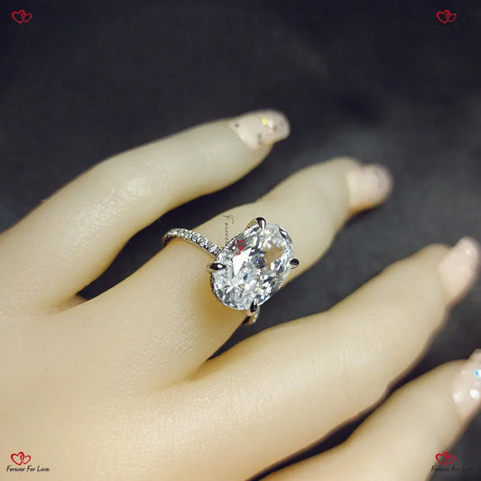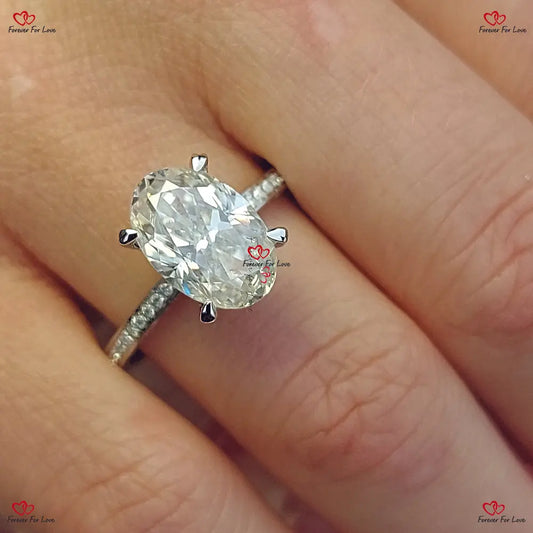 Crushed Ice Oval Cut Moissanite Engagement Ring | Hidden Halo Bridal Set | Pave Set