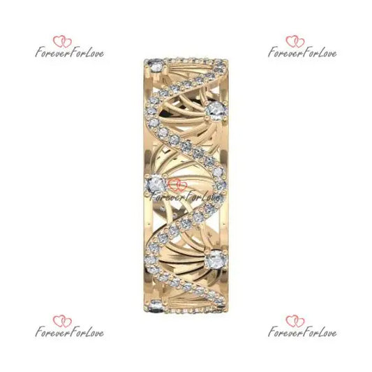 Dainty Diamond Half Eternity Ring - Gold Pave Set Wedding Band for Women with Genuine Diamonds