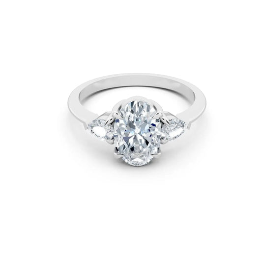 Oval Center with Pear Side Stone Trilogy Engagement Ring