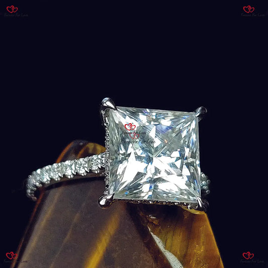 Princess Moissanite Engagement Ring | Solitaire Moissanite Ring | White Gold