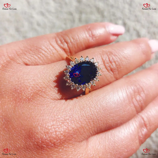 Vintage Blue Sapphire Engagement Ring Princess Diana Certified Oval Cut Yellow Gold Diamond Ring