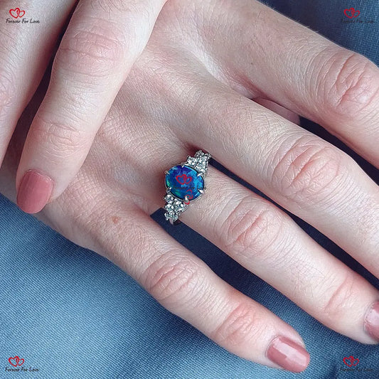 Oval Cut Opal Engagement Ring - Art Deco Diamond Cluster Ring