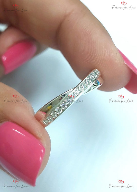 Twist diamond wedding band, 2mm Diamond eternity band, Twist diamond ring