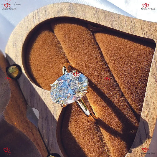 Ovaler Solitär-Diamant-Verlobungsring aus massivem Gold