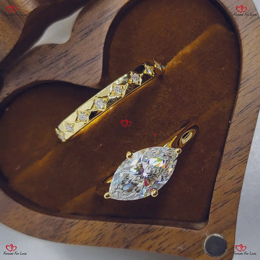 Solitär-Verlobungsring-Set mit Diamanten im Marquise-Schliff