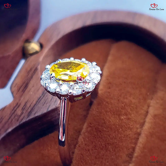 Ausgefallener gelber Diamantring im Ovalschliff mit Halo-Verlobungsring