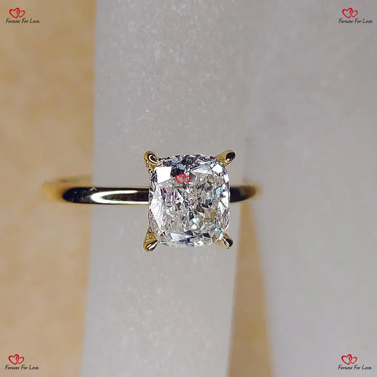 Verlobungsring mit im Kissenschliff gezüchtetem Diamant | IGI-zertifiziert F/VS1 | Ehering mit verstecktem Heiligenschein für Frauen