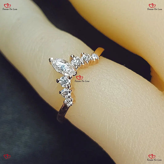 Gebogener Vintage-Ehering mit Diamanten im Birnenschliff | Stapelring für Brautjubiläum