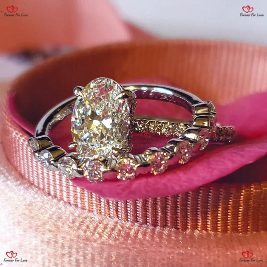 Klobiges Band Oval Diamant Hochzeit Braut Set