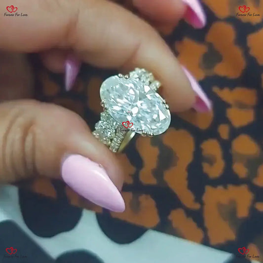 Crushed Ice Oval Cut Moissanit Hochzeitsset in Weißgold