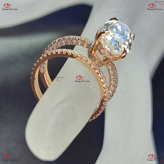 Ovaler, zertifizierter Moissanit-Verlobungsring im Blake Lively-Stil | Hybrid Crushed Ice Solitär | Massives Gold