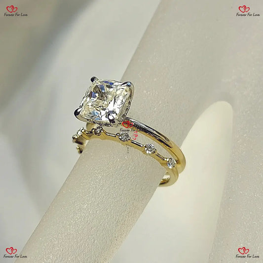 1,9 Karat Diamant-Verlobungsring im Kissenschliff mit Laborzucht | Hochzeitsset mit verstecktem Heiligenschein | IGI-zertifiziert | Brautring aus massivem Gold