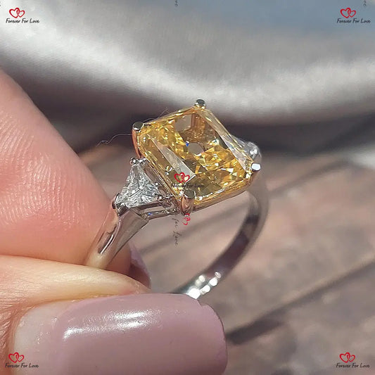 4 Karat Fancy Intense Yellow Kissenschliff Labor-Diamant-Verlobungsring mit seitlichen Diamanten im Trillionschliff - Massivgold/Platin