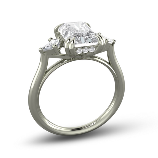 Verlobungsring mit Moissanit im Radiantschliff aus Weißgold – Solitärring mit Fassung und einzigartigem Jubiläumsring