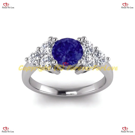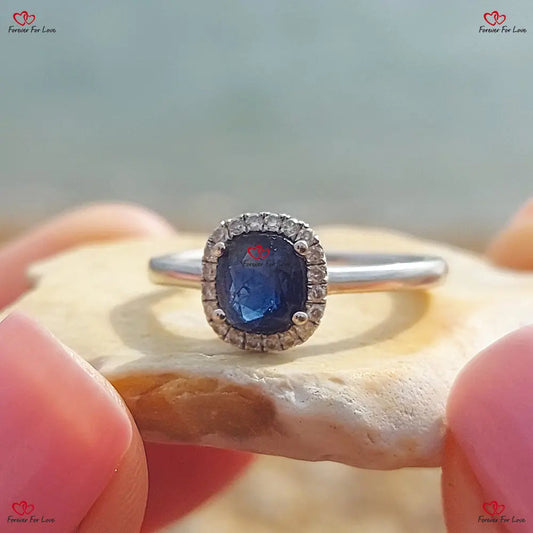 Natürlicher blauer Saphir und Diamantring Saphir Weißgold Verlobungsring