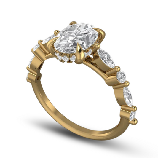 Ovaler Diamant-Ehering, Fünf-Stein-Halb-Eternity-Ring für Sie