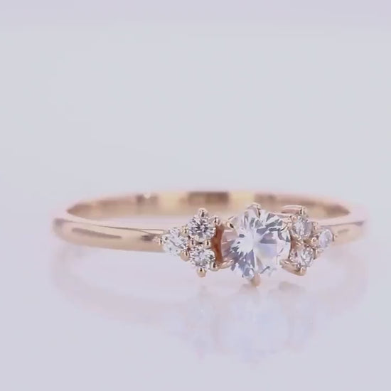 Natural Round Diamond three stone cluster ring- Diamond rose gold Engagement ring