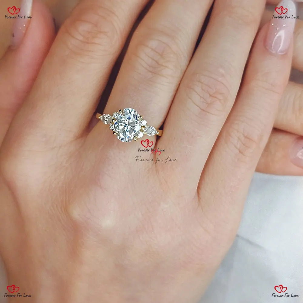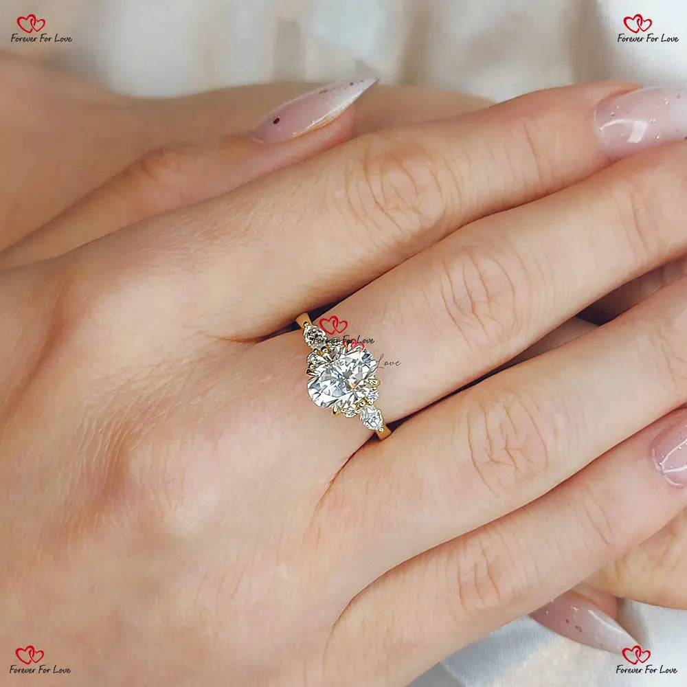 Einzigartiger ovaler Verlobungsring, Art Deco Cluster mit Marquise Diamanten