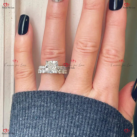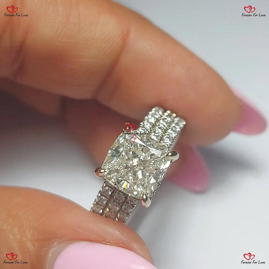 Ensemble de bagues de fiançailles à taille coussin avec bandes pavées