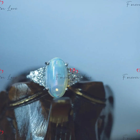 Bague de fiançailles avec opale taille ovale et grappe de diamants