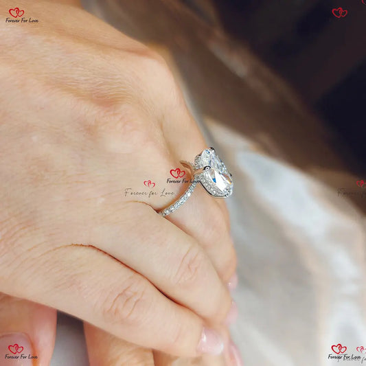 Bague de fiançailles avec diamant taille coussin à double griffe et halo caché