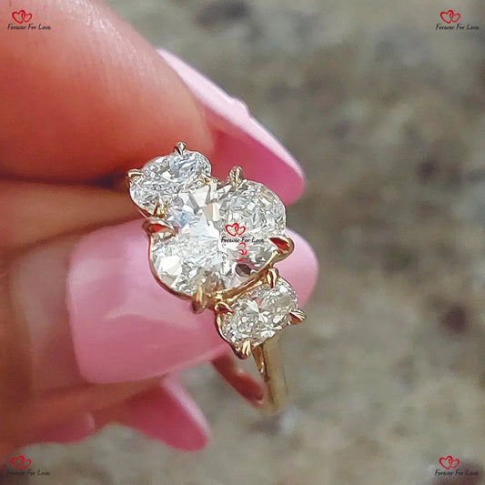 Bague de fiançailles ovale allongée en glace pilée sertie de lunette