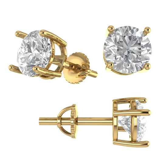 Solid Gold Moissanite Stud Earrings | Brilliant Round Cut Screw Back