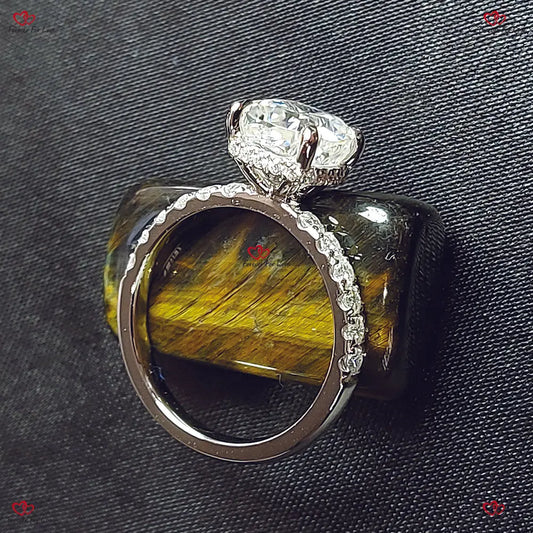 Bague de fiançailles en moissanite taille coussin | Solitaire en diamant flottant | Solitaire en platine |